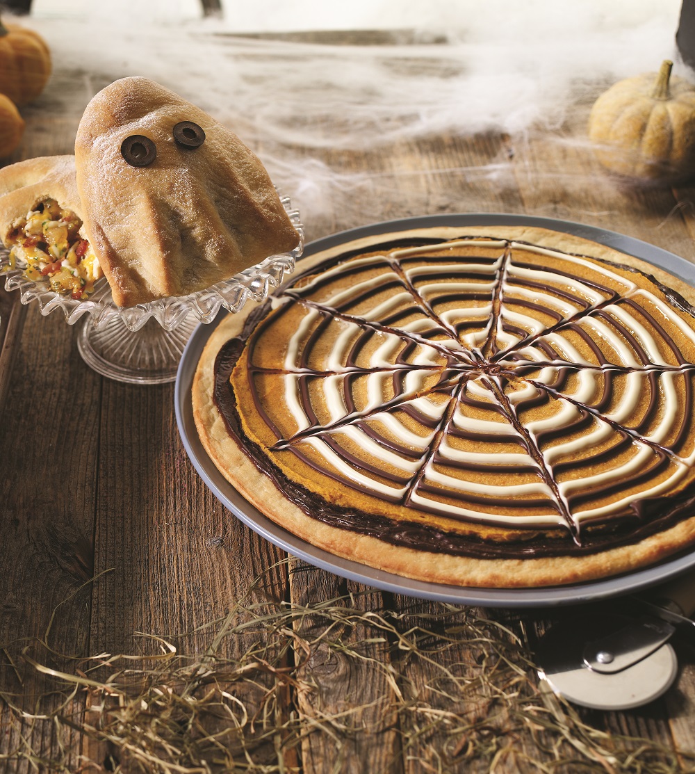 Cobweb Pumpkin Pizza with Chocolate and Ricotta