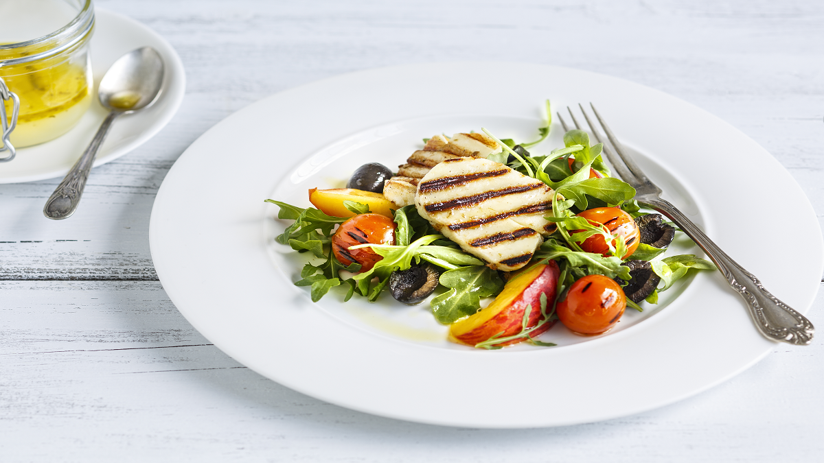 Grilled Halloumi, Cherry Tomato and Peach Salad