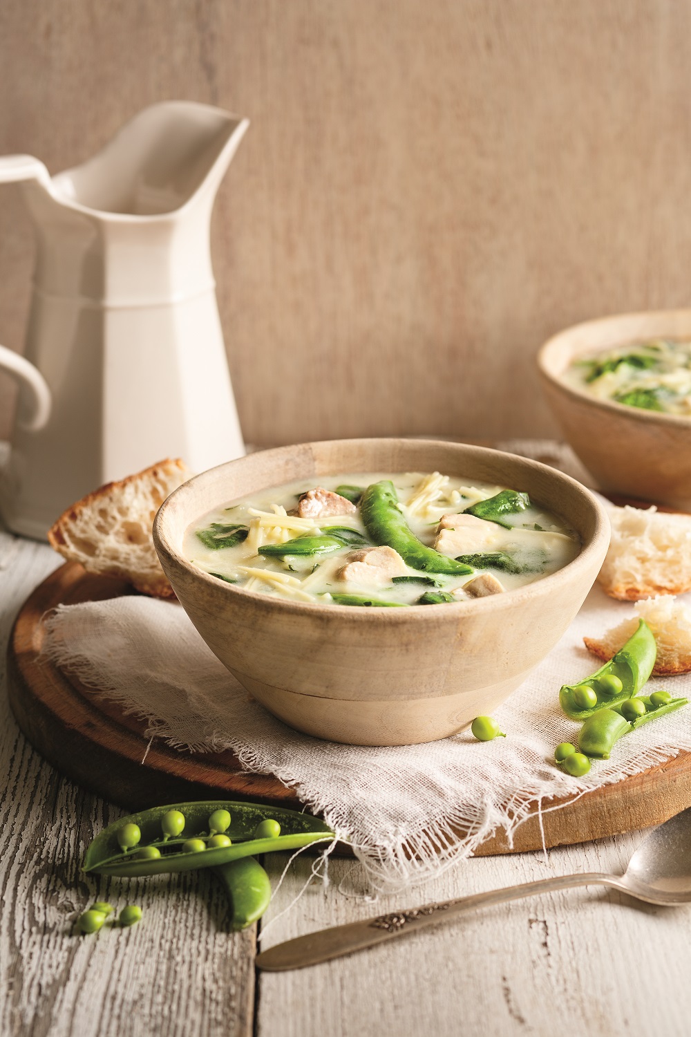 Springtime Chicken, Spinach and Sugar Snap Pea Soup