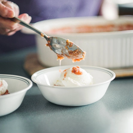 For the best taste, serve warm with a nice scoop of vanilla ice cream on top!
