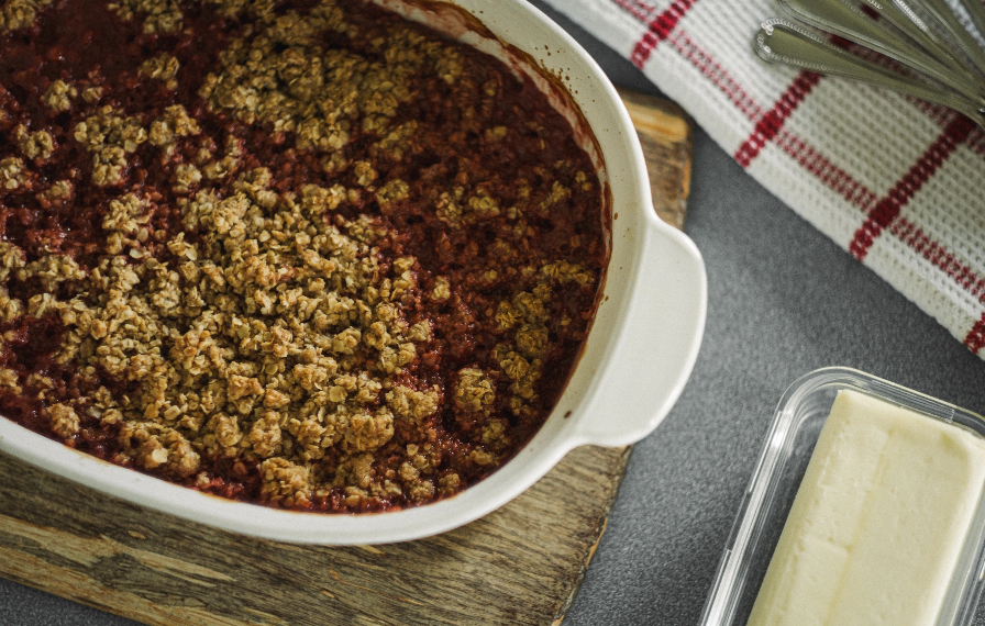 Throughout the years, I’ve tried many different fruit crisp recipes, but the combination of rhubarb and strawberry was something I always wanted to try. I just never seemed to have all the right ingredients at the same time. One day, I had fresh rhubarb on hand and strawberries in the freezer—it was the perfect time to begin experimenting with the flavours I’d been dreaming about for so long.