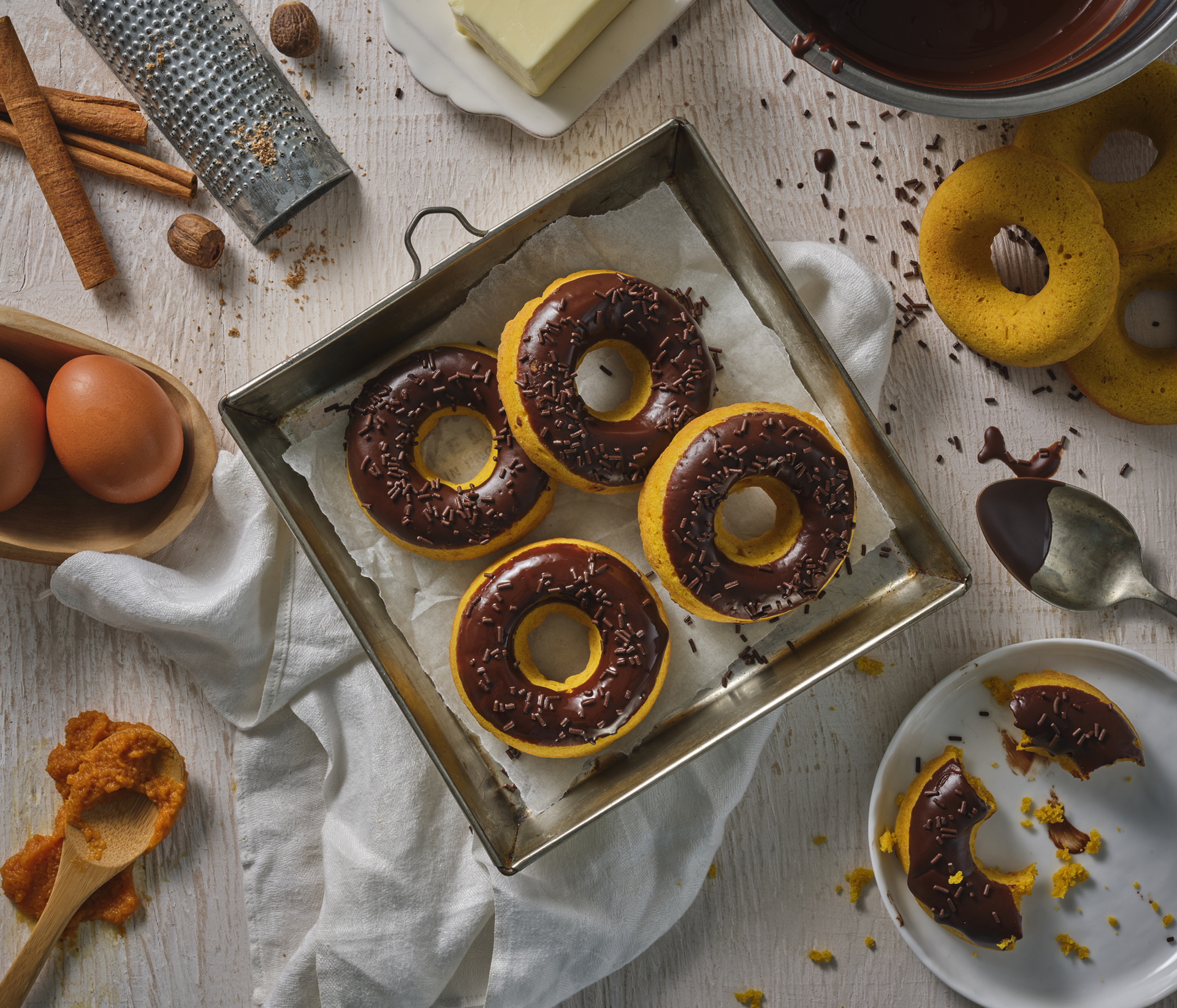 Chocolate Glazed Baked Pumpkin Doughnuts