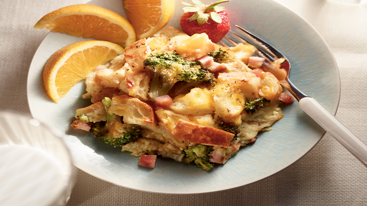 Broccoli, Ham ‘n’ Cheddar Strata